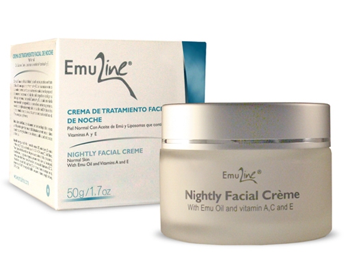 EmuLine® Night Facial Cream has been especially designed to moisten facial tissue during the night. It’s Emu Oil formula offers great quantities of natural antioxidants that prevent premature aging of the skin. It’s high level of monounsaturated and polyunsaturated fatty acids, mainly Oleic and Linoleic Acids, allow it to penetrate deep down into the layers of the skin quickly and easily, applying a deep emollient and moisturizing action. It regenerates tissues. Prevents and eliminates wrinkles y blotches. It does not cause acne. It contains Plurilateral Multivesicular Liposomes (PLMs) which have Vitamins A, C and E. Vitamin A is known to be an active ingredient of the keratinization process of the skin, ideal for usage on photoaging tissues. The Vitamin C has a skin lightening effect and it stimulates the synthesis of collagen and the Vitamin E prevents premature tissue aging thanks to its antioxidant effect.